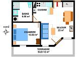 |  | A3p/6 pro 6 osob : 38 m² - obývací pokoj s rozkládacím gaučem, první ložnice se dvěmi samostatnými lůžky nebo s palandou, druhá ložnice s dvoulůžkem.