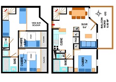 |  | A4p/10 pro 10 osob : 65 - 70 m² - obývací pokoj s rozkládacím gaučem, první ložnice se dvěmi samostatnými lůžky nebo s palandou, druhá ložnice s dvoulůžkem, kabina s palandou, předsíň a mezanin s palandou.